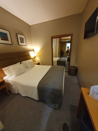 Read moreA VERY mediocre experience for an uneduqite price. The hotel is located perfectly in the city with an amazing view from the roof top. But the quality of the whole place leaves much to be desired. It's an old hotel that hasn't been renovated or refreshed since the early 2000s. It seems from the comments here that they offer an upgrade to almost anyone - ourselves included. It was an additional 25€ a night for a "bigger" room one floor higher with a balcony. We didn't take it. Our room had a distinctive old carpet/furniture smell that was almost choking if not ventilated after a whole day out. Most of the furnishings were dated and scrappy, not dirty, but worn out and clanky. The rooms are really small, we struggled to set our luggage open (and I don't accept saying that it's a historic city center where there is limited space - you could build a hotel with fewer but bigger rooms, the size of the room is a consious choice by the owner to cram more people in). There was no fridge in the room, nor a kettle or drinking glasses (only a set of two paper cups). The bathroom was also small - you basically touch the wall of the shower with your toes when sitting on the toilet and get the toilet paper rack poking you in the side. The pressure in the shower is very low and the space in the shower itself is really tight. I don't recommend this place for older or bigger people - it'll be tough to get around. Additionally, there was a bad sewer smell coming from the toilet. Walls are paper thin. The breakfast is nothing special. The food is mediocre at best. Given the choices in the city, it's not that bad but comparing it to other hotels in Lisbon or Porto it's well...