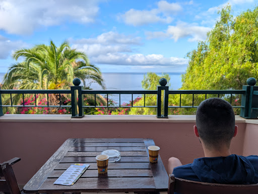 Read moreStayed for 5 nights here on my 1st visit to Madeira. I'd say it's an ok place to stay. Nothing special by any means. It's actually rated a 5 star on the front, but I wouldn't give it more than a 3 to be honest. The reception area is nice and airy. And you get a free Madeira wine in check in. Also, as my flight arrived after dinner, they give u a packed dinner with a pretty dry ham and cheese sandwich, orange, biscuits, and some sponge cake thing. Nothing amazing, but a nice gesture. The bedrooms(mine was apparently a deluxe) were pretty basic. Don't expect anything like you get in an Asian 5 star hotel, or Dubai. The in wardrobe fridge was like a cheap plastic desktop one that a gamer would have next to their computer. And it really didn't cool down my complementary bottle of water even after 4 days. Also the safe was already in a locked position so I couldn't use it. Although I rarely use them anyway, so didn't complain. Id rather carry valuables with me. Also my patio door leading to a small balcony was knackered. The handle was all loose, and took some skills to get it to lock. The bed was ok tho, as was the daily room service. Shower wise, it didn't have a removable head, so you need to do a handstand to wash your sweaty undercarriage, but temperature was ok. The aircon was also sufficient, although it never exactly got freezing. So facilities. It has a couple of pools outside, and 1 inside too. They are ok with a swim up bar on the top pool. The bar does a few cocktails, and the usual drinks too. I stuck with beer mainly. Although I did have a Poncha too, which was actually ok even though it's pre made. The beer is Coral that they serve everywhere. And there is a small bar area near the terrace where u can pour your own as you need it. Saves queuing at the poolside bar. The outside area is nice with gardens and little pathways down to the pool. There are a couple of places to eat. An outside terrace area.....which I found out on last day you need to book. And the main restaurant area on the 6th floor. Food was ok. They did charge the mains everyday. Quite a few meat choices like chicken, pork, lamb and beef etc. Then the usual salad areas and a few veggies so satisfy rabbits and the like. đ. Desserts were also varied, but usually consisted of the usual European cream cake type stuff. They also had fresh fruit for dinner and breakfast if u wanted and yogurts etc. 1 night they even had a chocolate fountain. However it really wasn't flowing well, and when I tried it, they had used chocolate syrup in it. Why? No idea. Needless to say, it wasn't very popular. You can get beer and wine with ur meals. Not for breakfast though sadly. They hide the beer taps. The wine tastes exactly like you'd expect.... vinegar. Even the rosĂŠ. So that wasn't too popular either. So location wise... It's not too far from the sea front. You need to walk down past all the pools, the kids play ground, and tennis courts, and you come to a lift which takes you down the cliff to the beach level. To get back up....you'll need to swipe Ur room card. The beach is a rocky black sand affair, but if you turn to the right, there are a couple of cafes where you can have a drink or snacks. Or if you go to the left you head towards a tunnel in the cliffs which heads towards Funchal. You can walk all the way around the headland to Funchal, but it's quite a trek. Think it's 5km or something. I did it once, but walked back via the roads, and that seemed a bit quicker. The hotel does a have a daily shuttle bus to the town too though. I never checked the times however. So yeah, that pretty much covers the hotel. It has coffee machines dotted around, a ping pong table, snooker, and a bit of a gym and spa if you're into those. They also do the usual aqua aerobics daily, either outdoor or in the indoor pool if it's a bit cloudy. They do have entertainment on in the evenings too by the pool on a little stage. Although it all seemed like karaoke to me. There is also an indoor entertainment area, but I never saw that being used on my visit....