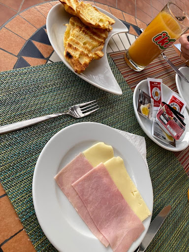 Read moreLe Montinho de Ouro a l’avantage de se trouver en pleine campagne, excentré de toute ville. Il n’est cependant qu’à dix minutes de Lagos et un peu moins du magnifique village de Luz. Il s’agit d’un petit complexe assez intimiste où la couleur safran des murs se mêle à une belle végétation et des odeurs de figuiers.||Nous sommes arrivés sur place à 15h, heure du check-in. L’accueil a été un peu froid (comme un peu partout en Algarve, la glace est toutefois vite brisée) mais efficace. Toutes les informations nous ont été données et nous avons été accompagnés jusqu’à notre chambre.||1- La chambre 3|Elle donne sur le jardin, face à l’immense caroubier planté au milieu d’une jolie pelouse (ce qui permet de faire des séances de sport très agréable). La chambre était grande. Elle disposait d’une belle terrasse avec mobilier de jardin. Une grande baie vitrée donnait directement sur le grand lit avec, en face, la télévision (enfin, l’écran d’ordinateur, vu la taille) et un mini couloir s’ouvrait sur la gauche sur la grande salle de bains. Dans ce couloir se trouvait la penderie, le frigo et le coffre-fort.|Le meuble à tiroirs en face du lit et les coffres de lit permettaient de ranger les affaires avec facilité. Il n’y avait pas d’espace bureau, mais, à droite du lit, une coiffeuse avec tiroirs et un miroir, très utile pour se préparer.||La chambre était décorée à l’ancienne avec des meubles en sapin couleur clair et vernis, et des poignées rondes old school. Derrière le lit, se trouvait une décoration murale faite en grandes plaques de pierre grise montant jusqu’au plafond. Au-dessus de la tête de lit était accrochée une décoration mélangeant lune et soleil dans un style indien. Dans le couloir, un triptyque mural en fer représentant des fleurs apportaient la touche contemporaine, tandis que les luminaires de style industriel portaient la touche moderne. Les gros rideaux aux motifs floraux étaient vintage. En somme, une décoration très hétéroclite sans ligne directrice.|Quoi qu’il en soit, la literie était confortable. J’ai toutefois trouvé beaucoup d’imperfections. A commencer par la poussière sur les luminaires qui n’avaient pas dû voir un chiffon depuis plusieurs semaines (alors que le ménage est fait tous les jours) ; la poussière dans les tiroirs ; le clapet de la climatisation cassé ; les rideaux qui ne sont pas occultants du tout et laissent passer toute la lumière du soleil ; l’absence de rideaux d’intimité qui fait que si les rideaux ne sont pas tirés, vous êtes à la vue de tout le monde ; la taille de la télévision, beaucoup trop petite par rapport au recul.||En revanche, nous n’avons eu aucun mal à obtenir des cintres en plus. Les produits de toilette étaient renouvelés régulièrement, la salle de bains était très propre et l’eau chaude ne mettait pas dix minutes à arriver. Il y avait beaucoup de place pour ranger ses produits de toilette et une fenêtre permettait d’aérer la pièce. Par ailleurs, le sèche-cheveux était efficace.|Côté prises électriques, rien à dire, il y en avait suffisamment. Enfin, le frigo diffusait vraiment du froid et ne maintenait pas une simple fraîcheur comme cela se voit dans certains hôtels.||2- Le petit-déjeuner|Le Montinho de Ouro est un établissement trois étoiles. Le petit-déjeuner proposé en est à la hauteur. Le pain n’était vraiment pas top et certains produits n’étaient pas très qualitatifs : je pense ici au fromage industriel, aux minis pasteis de nata secs ou aux carrés de chocolat. Sinon, la confiture était artisanale, il y avait du cake maison, du fromage artisanal a été disponible un matin, les oeufs brouillés étaient bons, la quiche aussi. J’ai remarqué qu’il n’y avait pas de toaster. Mais à la fin du séjour, j’ai vu qu’une table de touristes portugais avait eu droit à du pain toasté. Il aurait été sympa qu’on le sache.|A côté de cela, jus de fruits, eau, café, thé, céréales étaient disponibles. Un matin, je suis sorti avec mon shaker de sport rempli d‘eau et il m’a été bien indiqué que cela était interdit.||Un conseil pour le petit-déjeuner : il est servi de 08h30 à 10h00, mais à compter de 09h15, il manque beaucoup de choses et le réassort ne se fait pas forcément. J’ai entendu des touristes se plaindre du manque de produits.||Je n’ai pas grand-chose à ajouter. Je pense que le Montinho de Ouro est un bon établissement mais pour le week-end, pas pour y passer une semaine entière. Les lieux sont charmants. La piscine à moitié couverte par une terrasse à colonnes est sublime. Le parking est toujours disponible. L’hôtel a surtout l’avantage d’être situé très près, comme je l’ai déjà indiqué, de...