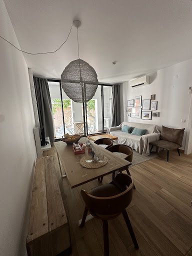 We were on the first floor (1C) facing the street and had a two bedroom apt. Beautiful efficiency unit with stove, fridge, nespresso machine, juicer, kettle and toaster. Lots of dishes etc… which helped when we just wanted to dine at home or make our own breakfast. We were welcomed with fresh oranges and honey with crackers upon arrival. Lovely rooftop lounge area where you can view the entire city and beach. This access is free. Also another lounge area on main floor which also has free bikes to use. You can borrow beach towels, grab more blankets and use iron etc… Beds were very comfortable and the air conditioning worked very well. Only word of advice to those light sleepers, is that this little town is a heavy party town area and there are many many late night (until 4am etc…) revellers that do not respect that this lodging place is in a quiet zone. After the first night i just put on some noise cancellation app which did the trick for the most part but be forewarned there are a lot of happy drunk people around. Lol One deterrent was the drug pushers which we found to be more annoying than anything else and it was the same 4 that we observed moving around the inner area. Once we told them no they backed off easily. We felt safe in this area but as always when travelling be mindful of your surroundings. The staff at The Salty Lodge were nice and helpful when needed but we felt we were bothering them when we asked for the daily coffee refills. After the second day we didn't bother to ask anymore and just bought our own refills. Restaurante Bar Inna is the place to go for REAL delicious Portuguese food and the fish cataplana was AMAZING!!! The owner works there herself and her husband is the fisherman who catches the fresh fish served daily. We also went to Pomo Italian eatery but honestly it was just okay and not geared up to be all the hype of the line up. Kisa is an amazing place right beside the Salty Lodge and we highly recommend for home made gnocchi, pizza and vegan bowels. Not to mention their fresh juices are incredible. We also went to Don Toro angus beef steak house. The calamari was horrible BUT the steak and Argentinian vegetables were the BEST we have eaten in a very long time. Thanks for nice memories of a...