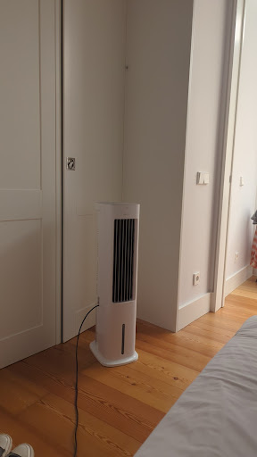 Large rooms, very clean, the actual building communal areas like the stairs and entrance hall are immaculate. Very clean. The apartment we have is 1b at the back of the building. The property does not profess to have AC. But it does say in its ad thar it has an AC unit, which is actually a 1 metre high 20cm wide tower fan. It has a small water tank at the bottom, which the warm air filters through. The only way to achieve actual cold air (AC) is to fill it with ice every few hours. So that's what I'm currently doing. Pouring water into cups, placing them in the freezer and then decanting the huge lumps of ice into the small water tank at the bottom of the unit. I know I'm the first person to bother because the existing water inside the tank was yellow and stagnant. If we open the back windows for air flow, it's too hot outside, because there are AC vents from other buildings that are pumping out hot air. Plus, there is a building site and so it's incredibly loud. It is currently September, so the temperature inside the apartment with the pseudo AC unit is almost bearable. How anybody could cope inside this apartment in June, July or August is a mystery to me. There is no way it's liveable. Frustratingly, the room does have AC infrastructure with large AC vents on the top of each wall in each room, and there is an AC panel on the wall. But it doesn't work. Either the company that owns this property doesn't want to pay the money to maintain it, or pay the electricity bills for them being used. The outcome is an apartment that is unbearable. The upside is that the location is superb. It's arguably the best place to be in central Lisbon. With regards comfort, the bed is ok'ish, pretty hard mattress but I like that. Pillows are thin and lumpy, so pretty cheap. Shower is big and powerful, there is a small ironing board and excellent iron, a large washing machine and a large dishwasher. The TV is a modern SMART TV that connects to my phone easily with the Samsung SmartThings app. All in all the apartment is great but I would never stay again because of the AC issue.