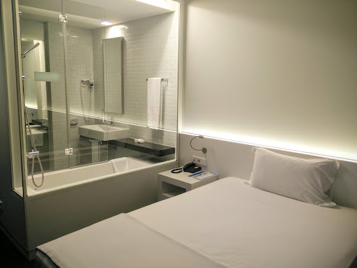 Read moreThe hotel is situated outside of any main areas. But there is a metro 5mins away, which takes 20mins or so to get into town. This is reflected in the price. Ubers are also very cheap from centre to hotel - around €6 and takes 15mins. ||Hotel is very clean and house keeping did a good job everyday. ||Lobby bar disappointing, plastic chairs, drinks not great, more like a waiting area next to reception. So would have nightcap before going back to hotel. ||Air con in the room was terrible. To the point where you couldn’t sleep at times. Even on full blast, didn’t make a difference. ||For the price, it’s only the air con which was a disappointment, but staff could’ve been more friendly too. ||Would consider going back if new air con system was put in, as mentioned earlier the price reflected the distance from attractions, which is fine. ||Lastly, and not just this hotel, but very surprised at the full glass wall separating the bathroom and bedroom. Not sure anyone wants to see their partner or friend sitting on the toilet. ||You are completely exposed in the shower too, so not a room for friends to share. ||Worthwhile if looking for lower cost hotel but take the above points into...