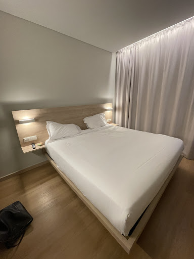 Read morePlain vanilla budget airport hotel, approx 15-20 min away from the airport. Taxi is cheaper than Uber. Nothing around the hotel. No restaurant around. Good luck finding some food if you arrive late. Check-in was easy. The guest room corridor is spartan, all wood decor looks more like a long sauna. There is no room key; a passcode written on a card that you have to enter on a keypad outside the door - very inconvenient. Bedroom is functional, utilitarian. Window view is an embankment wall. The bathroom is small where it is difficult to pull towel off the rectangular section towel rail. There is no soap in the shower, just shampoo. The bed comforter is too thick and pillows too thin. AC did not work properly; it switched off often. With the thick comforter, poor a/c it was too warm in bed. Could not sleep properly and woke up with a headache. The breakfast area is very nicely furnished; there is even an outside eating area, very pretty. There are nice couches to relax. The breakfast was ok. There was a machine making mini-pancakes. Cereal, bread, croissants, pastries, are all available etc but no scrambled eggs or any egg dish. A complicated coffee/tea machine that adds too much milk to your coffee or tea. Generally an ok, clean hotel to sleep a night before...