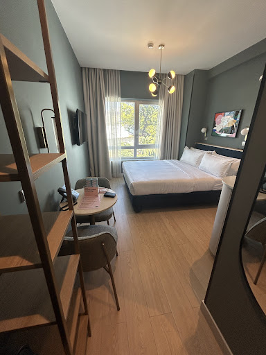 Read morethe location is great and the online check in/out worked fine for me. don’t be discouraged by the look of the entrance and the hallways, the rooms look a lot better. my room was quite small and looked very used, the walls were stained and bruised and one of the kitchen cabinets did not close.