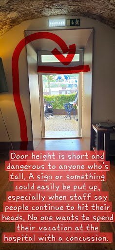 Read moreVitor Horta & Margarida Costa, pay attention to the reviews you’re getting because “a lack of professionalism” by your staff continues to be an issue for guests and it’s not being addressed. When I first walked in, I was given a cold and unfriendly welcome, we had just come from the Hilton Porto Gaia where we had the most incredible 5-star stay, so immediately to be greeted so poorly made me feel a bit sick to my stomach. Our Suite was East facing, nothing special, but it was clean. I’m shocked that more people aren’t complaining, but the tram on the North Road in front of the hotel and the train at the South end of the hotel kept us up all night! You literally hear the rumbling in your pillow every 10min and it’s enough to drive you mad. The 5-star reviews with no mention of the Tram or Train, just blow my mind! Must be really heavy sleepers? After no sleep we went to breakfast where we were led to our table through a smaller than normal door (see pic), where my 6’1” husband hit his head and knocked himself to the ground. The response to this by our server was, “Yeah a lot of people do that” and then he said, “I did that as well on my first day”. The manager came over and also told us, “We’ve been telling “them” (upper management?) to do something about it as it’s happened to me and so many people”. Here’s an idea, why don’t you take initiative and throw up a sign, or even better, warn taller people to duck before you lead them along. Seems simple to me! At checkout the lady at the front desk asked us how our stay was, I literally had tears in my eyes, was absolutely exhausted and said, “we got no sleep due to the tram & train and we now are off to the hospital because my husband hit his head on your small door out to your patio and probably has a concussion (which he did). Her response was as serious as can be, “so it was just an ok stay”. I looked at her in absolute disbelief and walked away. This was how we ended our vacation, which was an incredible dream until we walked into this hotel and our nightmare began. Do yourself a favour, don't play Russian Roulette hoping for a good room and just stay...