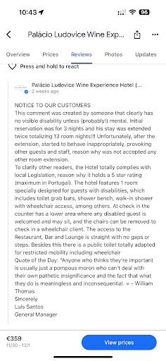 I hope the management will look into these lapses and fixes them because I noticed much nicer options at the price point (circa €450 per night) within the city at better locations if you...