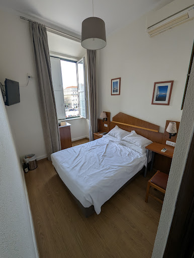 Bad - In hindsight, I should have paid close attention to the BIG BOLD LETTER that mentioned shared restroom. I am not a huge fan of sharing a restroom (toilet) with ten other rooms (dorm days are over). The rooms are not that special either. The rooms are small with twin beds, a small side table and a small cupboard to hang your five items. We stayed in a room with a balcony that was overlooking the main square, but at night it seemed like demons visited that place as there were all sorts of noises from garbage trucks to a random guy yelling all night. Buy ear plugs if you plan on sleeping through the night. The restrooms are only cleaned once a day, in the morning. So if you happen to use if late at night, bring a mask and cleaning supplies. The floor of the rooms were dusty or collected dust really fast (giving the benefit of the doubt to the cleaning crew).