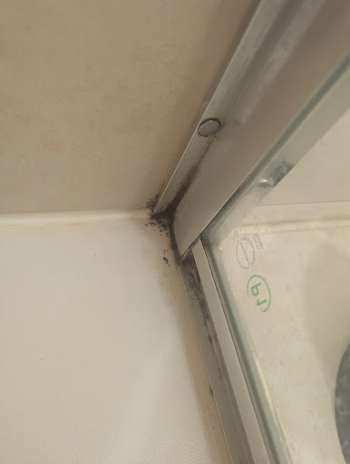 The bathroom left a lot to be desired, with a broken shower and mold everywhere.