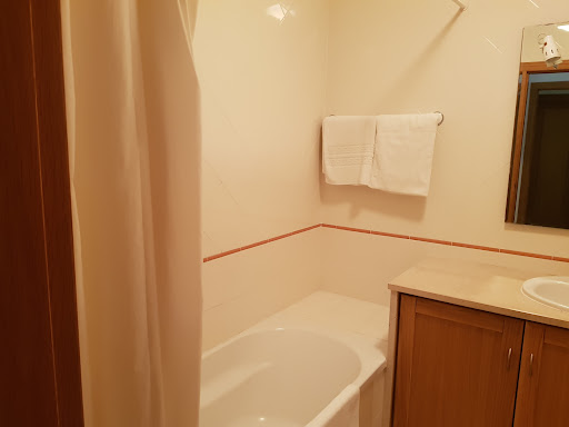 Read moreVery quiet. Apartments are spacious and well equipt with washer, fridge freezer, toaster, kettle and microwave. No hairdryer but does have iron and ironing board. Two bathrooms. Bedroom a good size. 3rd person bed was a roll out bed from under the settee. 4th person I imagine is the settee. Comfy on settee and roll out bed. Lots of wardrobes but no-coat hangers. Tea towels but no dishclothes or washing up liquid, but plenty of pots and pans