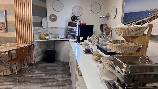 Breakfast offers a number of different choices and is generous. It includes a coffee machine that dispenses a selection of hot beverages.