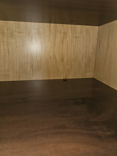 Dead insect (roach?) under towels in cabinet.