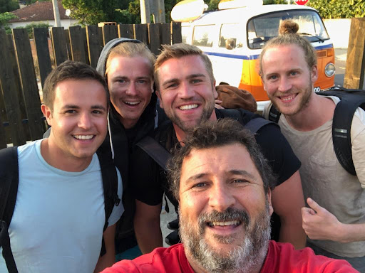 There is a shuttle service from the hostel to the beach in the Volkswagen, which was really nice to drive with. The surfinstructor TomƔs drove us with the equipment to the beach, and gave us good tips during surfing to improve our skills. Some of us rented just a board with their own suits, some a board and a suit. In general, everybody of the hostel was very flexible for our individual rentals and wishes. E.g. in the evening we were quite exhausted of surfing and thought about, ordering pizzas. Tomas just called the next pizzeria for us. The hostel owner Joel, his wife, and Tomas joind, and we had a nice dinner with the group. (By the way, its possible to cook in the kitchen your own stuff)