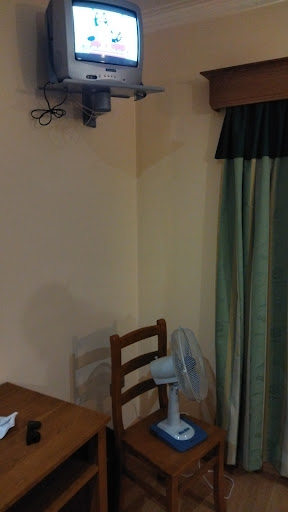 Um hotel antigo... precisa se de funcionários .. nos 3 dias que estive só vi uma pessoa que pelos vistos fazia um monte de coisas! Se não fosse ela o hotel estaria muito mau! O hotel se destaca com a piscina ,grande e tem partes fundas e outras não.. o problema da piscina foi que ao segurar as bordas da piscina ( as bordas que eram de pedrinhas ) fez feridas nas mãos... a água estava um pouco gordurosa. De resto sobre a área de piscina deu para se divertir muito e fugir do grande calor por estes lados gostei ! Além de causar interrese pelo o jacuzzi ,por desilusão estava estragado.. pelos comentários está estragado a algum tempo.. PEQUENOS ALMOÇOS- 5 euros por pessoa para pão com fiambre e queijo se tiveres uma família de 3 pessoas já gastas 15 euros mas a boa localização do hotel consegue resolver isso! Tem uma padaria /pastelaria nos arredores. Pela falta de colaboradores no hotel tem um restaurante completamente abandonado... mas não tem problema existe restaurantes perto. Tv do quarto do século passado... De resto quartos limpos , não tive problemas como outras pessoas a dizer que não arrumavam o quarto 1 vez ao dia.. LOCALIZAÇÃO- gostei muito ! Á frente já tens logo um supermercado.. ao lado tem um bar e outras coisas... Mas não existe muito para reclamar é justo pelo o preço que...