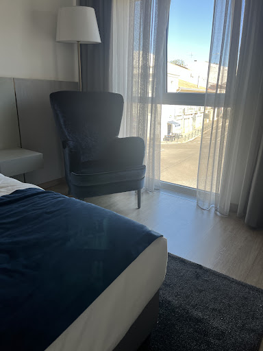 Lovely modern room and bathroom, very comfortable. Extremely helpful receptionist when we arrived but the poor woman was having to do everything as we found when we reported some of the lights in the room weren’t working. She had to come and look, leaving the desk empty so a queue formed. The bulbs had gone but no maintenance staff so couldn’t be fixed. This was a Saturday night and the hotel was full but the restaurant advertised was not open. However, we had a typically Portuguese meal at a nearby cafe. Very simple but some delicious food and wine. Hotel breakfast included in price but the service was utterly appalling. We arrived to find most tables free but none had been cleared. After going into the kitchens to find someone, a table was cleared with much bad grace and then we more or less had to set it ourselves. The breakfast left much to be desired and items ran out too soon. This could be a great hotel but the service let it down. Also, if there is private parking we couldn’t see if - we parked on the road outside which seems to constitute the private...