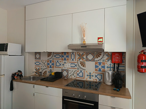 Let's hope it's never burning here. Container for water hose in staircase is empty, tiny balconies are facing away from the street, no fire ladders, no access to the backside of the house from the street. So no chance to get rescued, you are basically trapped and fire department won't get you out as they can't see, nor hear, nor access you. A bit like those tiny, wrinkled London houses, just uncharming and without the extra rescue option via the roof. You'll hear the main road the whole night, whether you are a light sleeper or not. The floor in every apartment cracks loudly and I woke up several times being sure someone was walking in our room, but thankfully it was just the neighbours. Slept in many basic conditions around the world, but would never ever stay here again. Not for half the price, not if was payed for it. Simply don't need to stay in a place where I end up as fried chicken just because chances are minimal to leave in an emergency. Worse with family. Neighborhood is kind of dodgy, parking can be tough. Still, apartment is decorated according to the pictures, the kitchen is well equipped, shower is hot and water...