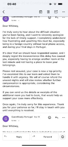 Read moreDO NOT USE ! I was unable to get into my apartment and I had to get an additional hotel they claimed they were going to meet me at the apartment to help me get in as I could not get in and no one met me. I asked for a refund for the days that I could not get into the apartment and ask for someone to meet me since September 16 to the 19th which is today and still no one met me however they claim they had time to go there and see that everything was "in order"