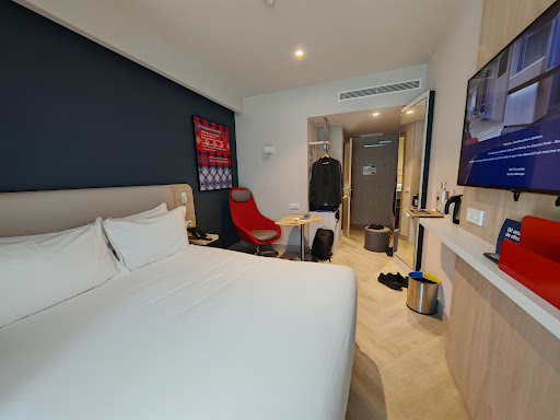 First off, the rooms are quite small, which is expected for a business hotel—but if you're traveling with more than two people, be prepared for it to feel cramped. We were three people sharing a room, and since the sofa converted into a bed for the third person, there was hardly any walking space left. There was also no wardrobe, so we had to manage our belongings in our bags, which wasn’t ideal for a comfortable stay.