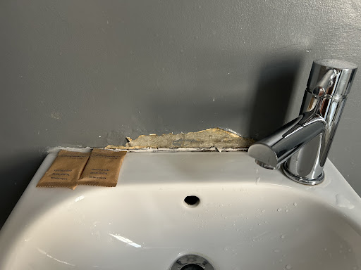 Paint was coming of the walls and you could see water damage stains. The windows are very old so the street noise comes through without any filter. So a good night's rest is nearly impossible. The bathroom is very small but I guess is sufficient. There is no wardrobe to speak of but again, for a weekend get away it does the trick.
