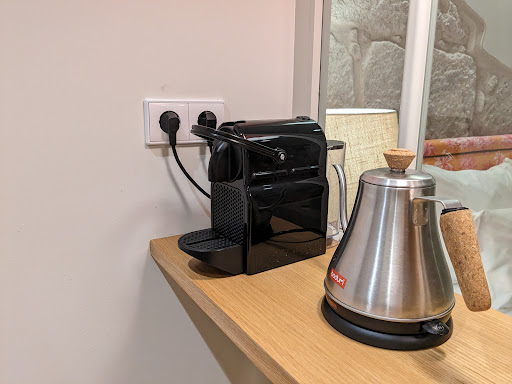 I booked a design suite and I would highly recommend this option to solo travellers wanting a bit of a treat whilst away or a couple wanting some space to chill in come the evenings and not wanting to be on top of one another. I loved the spacious kitchen/living room and the beautiful glass wall and door separating the bedroom from the living space and a cute and private bathroom. I was originally on the first floor (room 5) and I couldn't have been happier - I never heard my neighbours and the quality of the finish is 10/10. It was also a really lovely touch to receive a welcome gift of some delicious chocolates (the hazelnut chocolate was divine) and local port. Was such a treat to come back after a day of sightseeing and have some chocolate and glass of port in the evenings. Plus they provide robes, slippers, toiletries and yoga mats if you fancy a quick stretch at the beginning or end of you day.