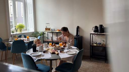 Сніданок відбувається з 8 ранку. Нам дозволили сісти трішки швидше, бо моя донька (2 роки) уже дуже хотіла їсти. Сніданок завжди один: круасан, маленька булочка схожа на чіабату, шинка, сир і додатки (масло, полуничний джем, мед). Нам також дозволяли взяти екстра порцію, після сніданку залишалися ще круасани і хліб 😊 Є близько супермаркет - Continente - 2 хв вниз по вулиці. Через дорогу від готелю смачний ресторан з нормальними цінами ( ~10 євро за страву) - Taberna Londrina