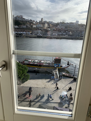 The hotel is in the tourist part of Ribeira, so in the busy part of the river front. Buskers play/sing their music (mostly good) quite loudly, during the day and into the evening. Lots of cafes and restaurants. So a very lively place.