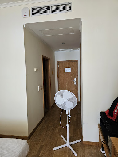 The room: oh boy...., this was not a 4 star hotel room, nowhere close. It needed badly reconstruction. We were given room for people on the wheelchair. (weird for us but ok, no problem) The furniture was looking rough and with old stains on the walls, bed and sofa. A/C was not working.... shower needed replacement. There was just no way to get water not scolding or cold :)