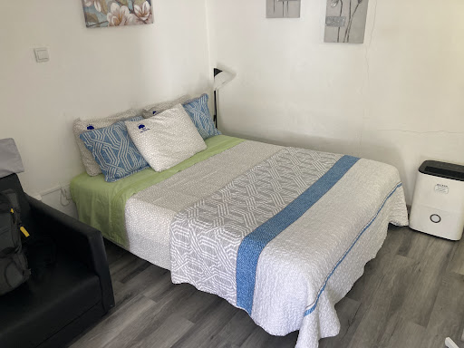 Top location in the center. Bakery across the street. It's small (6x4m) but has everything. Kitchen,Dishwasher, washing machine, oven,micro,toaster,Meo with 100+ channels, baby cot. Foldable table and chairs. Plenty of blankets and towels. Clean! I liked their eye for detail. There were even fresh eggs in the fridge. Why not more stars? Moldy humid smell when entering the room even though they had dehumidifiers running. This is a problem at seaside here everywhere. Bed is too small for me 140x190 and quite hard. Did not sleep a lot. Bathroom very small. Clock and scale not working,...