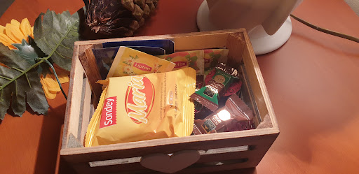 Bizarrely, we were given a little box with teabags in it, although there was no kettle and no cups. This was a little baffling.