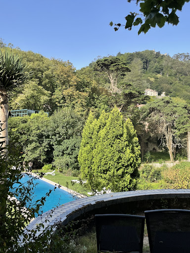 Hotel Sintra Jardim is not quite a hotel in some ways, more like a Pensione. For big instance, there were no amenities — NONE — in the bathroom. Bring your own, and a wash cloth if you like. Our Garden View room on the first floor featured a short bath tub with only a plexiglass swinging panel to block water from shower … resulting in a soaked bathroom … by the time I figured out the water comes out of the hand-held shower head that was left facing out. There was a hand soap dispenser on the corner of the tub with not very nice liquid soap in it for body wash. ||The lush garden was a sanctuary of delight, though, and made up for funkiness of the hotel. People swam in the pool in May while we were there. If you want a place to get away, Hotel Sintra Jardim is like no other around. You can see the Moor Castle from the hotel’s terrace. (The Terrace door is locked at 11:00 at night, so you can’t get out.)||Breakfast was pretty good. ||The hotel desk clerks spoke excellent English. ||Hotel Sintra Jardim is a steep 15 minute walk downhill to the Historic Center of Sintra, We liked that we could walk even with the walk back up the steep hill. If you can spend a night or two in Sintra, I recommend it to have the beautiful little city all to yourself.||The hotel desk clerks spoke excellent English. ||This is what I wish I knew beforehand:||We wanted to go to Quinta do Regalieras first. We spent an hour in the Center figuring out how to get there, turns out via a Hop On Hop Off bus. When in fact the #1252 local yellow bus that stops right outside the hotel goes directly to Quinta do Regalieras! We also found we could have walked from the Hotel, albeit a steep climb up. The #435 Hop On Hop Off bus goes there, as well as to Palace Montserrat. ||As for the Hop On Hop Off bus … these are the big WHITE buses you catch in the Center and particularly at the Railway Station (#435 to Quinta do Regalieras). The Buses do take credit cards. All day ticket is 13 Euros and change. (I at first mistakenly thought we were looking for the typical Red sightseeing double decker buses, but those only come from Lisbon.)||The #434 bus goes to Pena Palace and Moor Castle, which we caught at the bottom of the hill from the hotel. As mentioned, you can use a credit card. ||The #434 and #435 just go in a loop, so you cannot go wrong hopping on one at any point. ||In all, Hotel Sintra Jardim was the best we could do for wanting a 3 person room. And is the kind of place experiential travelers like for its history, character, and for its unusual-ness. It was nice to be a bit...