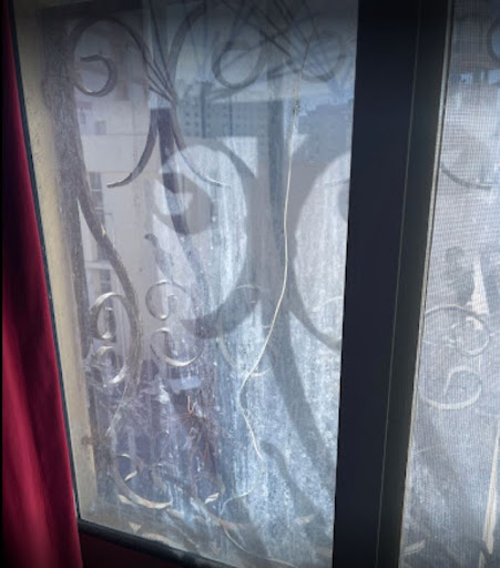 The cleanliness standards were shockingly low. The windows were filthy, covered with dust and bird droppings, and were impossible to open.