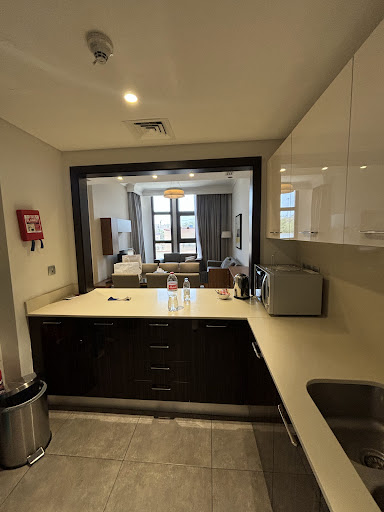 A â Ambience The overall vibe was cozy and family-friendly. The furniture was stylish, interiors well maintained, and the gym runs 24/7 for those who need it. Facilities are open until 10pm (except the kidsâ club/kids pool, which close earlier 8pm). Having a supermarket and pharmacy at the ground floor was a huge convenience, though restaurant choices in the buildings were limited. A small downside: the corridor lights switch off automatically and only turn on with a delay, which startled the kids a few times. Sound also tends to echo through the halls, even reaching the end rooms.