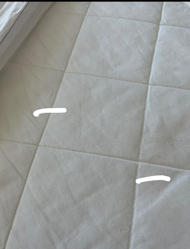 In the following day, I found a bigger red spot on my arm, which made me worry about the mattress and bedding hygiene. I pulled out the first layer of bedsheet, and I found 2 hairs that didn't belong to us, and I got disgusted and couldn't continue looking if there was bed bugs, but at first glance I did not see any.