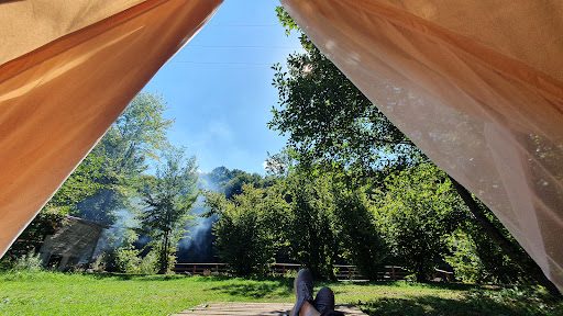 Read moreAm petrecut aici, 4 zile, și cred că am mai fi stat câteva, dacă nu am fi fost constrânși de timp. Glampingul este amplasat la vreo 15 minute de mers pe jos, față de gară. Prin urmare, puteți vizita localitățile învecinate, fără nicio problemă. Zona este ofertantă pentru iubitorii de activități în natură (ciclism, rafting, via ferrata, drumeții). Totodată, după o zi de drumeție, este minunat să stai pe ponton și să asculți vuietul apei. Revenind la facilitățile "complexului", putem spune că am avut toate cele necesare. Salteaua a fost foarte confortabilă, iar cortul de glamping a trecut testul impermeabilității. Chiar dacă a plouat abundent, nu am avut nicio problemă. Totuși, s-ar putea să vă deranjeze zgomotul trenului. Recomandarea e să faceți cât mai multă activitate fizică și atunci șuieratul trenului va fi cântec de leagăn. Dacă doriți să gătiți, puteți folosi grătarele și frigiderele, însă veți avea nevoie de veselă și tacâmuri proprii. Totodată, puteți lua masa la pensiunile Gradia, sau Lavinia, ce sunt la 10 min de mers pe jos. Per total, locul este minunat și crează un mediu perfect pentru relaxare. Se simte implicarea și efortul depus de către proprietar pentru a oferi o experiență plăcută turiștilor. Mult spor în...