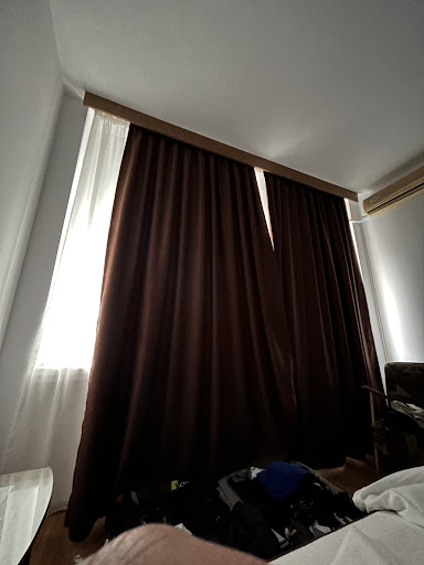 Hotelul este vechi, cu mobilier ce mi-a trezit nostalgii de acum 35 de ani. Camera in care am stat avea 2 paturi mici, inconfortabile, 2 fotolii cu cadru de lemn foarte fragil si joase, total nepractice si inutile in spațiul limitat al camerei. Prosoapele de dus de dimensiuni 30X60 cm. Păturile foarte înguste, te înveleai in fata te dezveleai in spate (am fost nevoit sa încropesc un acoperământ din 2 paturi, folosind-o si pe cea de la patul alăturat).