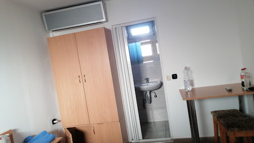 Deja intrarea ma speriat, arată exact ca la piata. Asa zisa receptie neingrijita, tot complexul neingrijit, lasat in plata domnului. Trepte care abia le urci din metal spre camere, camerele la etaj. Foarte cald, pereții din rigips.