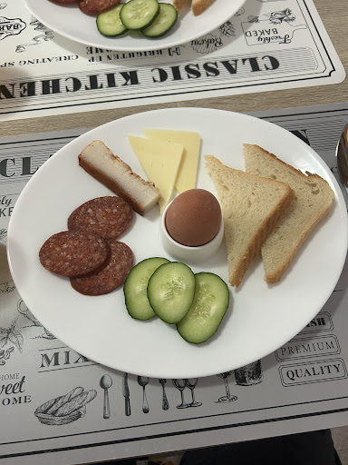 Am stat 5 nopți pentru că ne planificasem activitățile… dar am rămas cu un gust amar… foarte mare zgomot se aude absolut tot si din celelalte camere și de pe hol… se cazează foarte multe persoane pentru o noapte și foarte târziu…. 21/22 mai fac și câte un drum două până jos etc făcând un zgomot infernal și uite așa ajungi să te culci la 1/2 noaptea…. Iar legat de micul dejun jalnic la propriu… sa stai 5 zile și să mănânci zilnic ce se vede în poze e de nedescris…. Lipsă de respect față de clienții și la cel mai amărât spital din România micul dejun este mai diversificat .. și mai bogat mie unul mi-ar fi rușine de clienții sa le pun în față așa ceva…. Cafeaua la fel apă goală…. În terciul de ovăz am găsit păr … l-am dat înapoi i-am arată firul de păr. (Scuze) și atât scuze scuze … dar mi se putea înapoia o altă porție… porție pentru care eu am plătit…. Dar cum am spus mai sus...