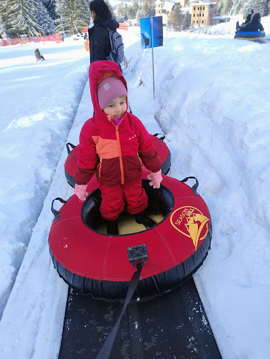 Read moreIn weekend este aglomerat, pe pârtia de săniuș e ok, pe pista de tubing nu reușești să te dai de foarte multe ori în timpul alocat. Banda de urcare la tubing se blochează foarte des , iritând pe toată lumea. Prețul mi se pare ridicat , am platit 200 Ron 2 adulți și un copil pentru 2 h, in aceasta suma este inclusa și garanția cartelelor de acces. Partea cea mai urâtă urmează la ieșire când trebuie sa stai la aceeași imensa coada pentru ați recupera garanția și a preda cartelele. Ar merita, la cat de batjocoritor se poarta cu acest sistem , sa pleci, pur și simplu, fara a mai...