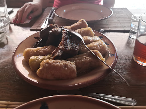 Even if the price for the food is per portion you could eat for a week from just one, they bring a big bowl of soup and you can eat until you burst..then second course comes with homemade sausages, smoked ribs and sarmale all this time while you have to fight a big pot of Pălincă, homemade wine ...if you are still alive then a homemade honey pie with homemade jam comes and knocks you down to sleep. Oh..and by the way...there is no menu, they make fresh food for that day and that is it, there is no frozen or reheated food from god knows when.
