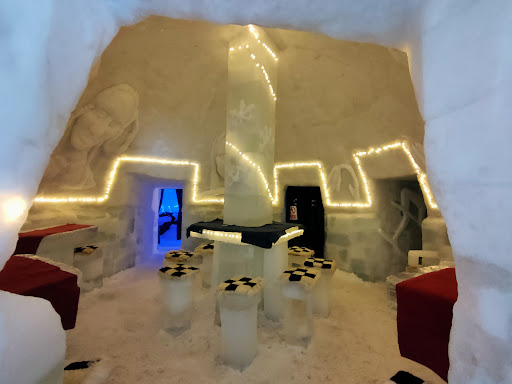 Read moreVisiting and sleeping in an ICE HOTEL is definitely something that you should do - a bucket list experience - something to tell the grandchildren. BUT tho it might be possible on a budget (which hotels in Sweden or Quebec really aren't) and even tho scenery up to and around the hotel is breathtaking, sadly the HOTEL OF ICE is not in the same league... Ice sculptures were very good... But miniature, when compared to Kiruna. During the day men or women (without anything that would distinguish them as staff) would sit beside entrances to the Hotel and the Ice Church and attempt to sell tickets to enter... Despite the fact that those resident at the Hotel of Ice for a night have free access. Within the area of the Hotel of Ice is a large family dining area, also some chalets. There is also skiing and activities with rubber rings and a banana boat, attached to a jet ski. It seemed all of these things received as much attention (and presumably investment too) as the hotel itself.... And it can't be denied that people were flocking to them. Perhaps especially for Romanian nationals a great day out, and for those who love their skiing/sledging/snowboarding. But on the merit of the HOTEL OF ICE alone. Sorry..... NO! Rather...