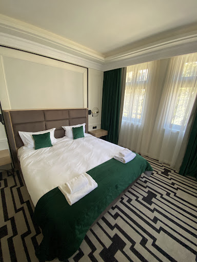 We stayed for a weekend during the end of August. We enjoyed the room although it had a street view and you could hear the traffic outside. It had a nice big balcony with chairs and a table where you could enjoy a cup of tea or coffee. The room is big enough for 2 people and so is the bed. We didn't like the pillows which were very soft and not so comfy. I would recommend offering a second pair of pillows with a stronger consistency. The air conditioning was automatically set to 19 degrees when you left the room so depending on your preference, it would be cold or not..... It is up to you. The cabinet opening system is a push type. Every time you opened the closet doors, a mark remained on the mirror (the mirror that is stuck on the entire surface of the doors). The breakfast was rich and sufficient to start the day strong. The outdoor terrace allows you to enjoy your coffee on sunny days. Lunch is also very good with slightly above average prices but tasty dishes and served with professionalism. The SPA center and the swimming pool were also pleasant, only that you have to take into account the fact that on the weekend the saunas and the salina are only open in the evening. By the way, the SPA center was really not crowded during...