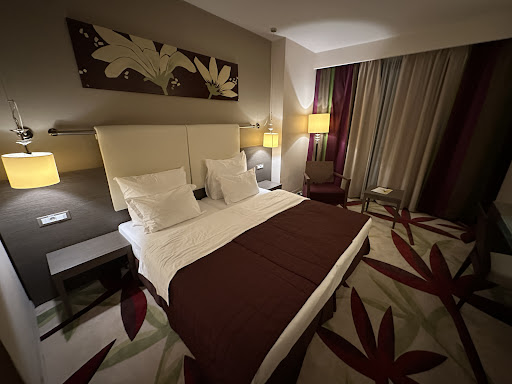 I stayed at the GOLDEN TULIP Ana Dome for several nights, and I was charmed by how classy this hotel really is. It is conveniently located in a tranquil place and it has been designed and furnished with exquisite attention to detail. |The room was quite lavish I would say, with a king-sized bed that makes you smile just by looking at it, a spacious bathroom, and a lighting system fit for any scenario you might need. The espresso machine and separate office corner were very convenient, as I could get both my rest and my work done, without even the need to leave the room.|The staff was attentive and courteous and handled every request of mine in record time.|The restaurant and hotel bar were more than suitable to invite any partners I wanted to meet in Cluj, which is a big plus, from my part. The variety of dishes available at the restaurant was sufficient, for the duration of my stay. The veal soup is a must, trust me! I am curious if there's a better breakfast in Cluj, I for one doubt it, since one could opt for the full spectrum: healthy, light options, wide variety of fresh fruits and also more savory alternatives (meat and cheese in my case). |I would give this hotel 5 stars for its beyond-reproach services and facilities but especially the kindness and professionalism of the staff, who made my stay truly...
