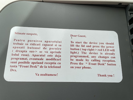 I stayed at the Grand Hotel Napoca for 3 days as part of a larger delegation that arranged our accommodation there. Despite being an old hotel, it has been well renovated; the lobby, hall, restaurant, and bar all look new. The room was spacious, partially renovated, but comfortable and clean. The biggest issue was the level of service provided by the hotel staff. Upon entering the hotel, you are not greeted at reception, and the breakfast in the restaurant is very basic. Out of 4 waitstaff, only one young waitress made an effort to be attentive. The other old-school waiters do not speak English and communicate through gestures, which is quite uncomfortable. They do not but rather maintain the buffet and clean tables after guests finish. Nobody tries to bring you coffee or assist you when you ask for something. For example, when I requested hot water for my muesli, the waiter pointed to a thermos that had been sitting there for 2 hours, and the water was no longer hot. When I mentioned that to the waiter, he directed me to the coffee machine to wait in line and pour hot water myself. There is no option to have an omelet eggs made to order; breakfast choices are quite limited, with only bananas apples available. The coffee from the machine tastes terrible, so after breakfast, we decided to sit in the hotel lobby and order coffee from the bar. I received an Americano smaller than the cappuccino my husband was drinking and asked bartender to pour it into a larger cup with a bit more water because I prefer my Americano more diluted. He reacted aggressively, gave me a plastic takeaway cup to pour it myself, did not respond when I thanked him, and then started banging metal dishes loudly and expressing anger about my request. Then, a supervisor by speaking Romanian, and the supervisor kept saying calm down, calm down. Finally, a problem arose with the air conditioning, which stopped working on the last day before our departure. It even felt like the AC was heating the room to 30 degrees! We asked the housekeeper, who said another room had a malfunction, and since the ACs are connected, the entire horizontal line was not functioning. I would not stay at this hotel if it were not booked organized. The staff need serious training because, unfortunately, all the good and comfortable aspects (such as free and very convenient parking in front) are overshadowed by the subpar service of the employees who do not seem happy to...