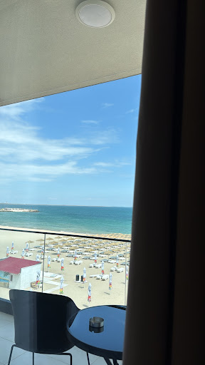 Cum am ajuns, am fost f.impresionati de amabilitatea doamnelor de la receptie, care ne-au recomandat parcare, baie, camera unde ne putem schimba, pana se elibereaza camera...aveam nevoie de toate aceste mici detalii venind de pe drum. Locație e noua, traversezi Aleea Belona de 2 m si intri fix pe plaja Belona....practic 50m pana in apa. Am avut camera triplă cu vedere la mare. Baie super, dotata cu uscator de par si absolut tot ce e necesar, presiune f.buna la apa. Minifrigider mediu ca putere de racire, aer condiționat extrem de bun, lift f. licențios un mare plus, patul 1,60 ×2 m, noi am mai avut unul suplimentar, camera dotată cu absolut tot ce e necesar, leduri, senzori de fum, scaune, mese mocheta f. groasa in cameră cam 1 cm....un mare plus pt copiii mici, draperii opace.....nu lasa deloc lumina sa pătrundă, tv,etc. Balconul destul de lat, plasa de tantari, măsuța plus alte 2 scaune f.comode,....Hotelul e super ok, totul e nou, plaja cea mai bună posibilă cu intrare lina si nisip f.fin. Noi chiar vom reveni, ne-a...