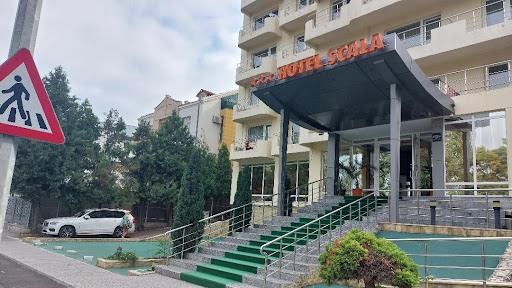 Spent three nights in this hotel, only because the Boulevard Hotel next door was fully booked. This hotel is struggling to make a three star rating. Rooms are OK but not spectacular, those at the front all have a large balcony facing onto the main street, but sound levels inside were no problem. However, on the downside - there are no hairdryers in the room and the shower is equipped only with a body soap of some kind which is not even pretending to also be a shampoo. The 'restaurant' is a room in the basement of the hotel, completely devoid of atmosphere and resembling a school canteen. The breakfast is sparse to say the least, some sweating cheese and cold meats (completely uncovered with a few flies buzzing about - and it was circa 38 degrees when we were there), fake orange juice like the stuff that you used to be able to make from powder, some truly revolting omlette type stuff and hot dogs, a dish of tomatoes and cucumbers, cold coffee or do it yourself tea - and that is it. All laid out on an enormous table, just to make it look even less than it acually is. We didn't even think about eating there in the evening.||A lot of the hotel buildings in Constanta look a bit Communist-grim and the Scala is not the worst of them, but neither is it close...