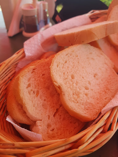 Vine pâinea - specialitatea casei: mucegai. Nu are sens să dezbat, puteți să vă convingeți singuri cu pozele atașate, vreau doar să menționez că ospătarul a dat vina pe acei 2 copii și singura explicație cu care a putut să vină a fost: "Îmi cer scuze, le-am spus copiilor care mă ajută că am pregătit niște pâine pentru animale și cred că s-au încurcat și v-au adus-o pe aceea."