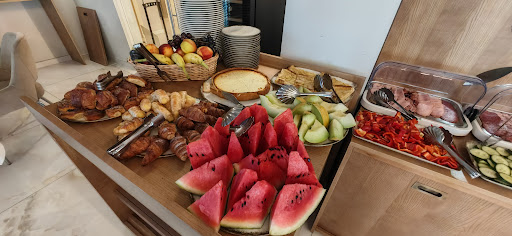 We were told that the property was a year old. We experiences pros/cons.||We had a very good screen on our patio door in our room unfortunately there was constant dog barking, sirens and car noises, it was unbearable. The AC did not work so we were forced to keep the door open. This caused horrible sleep.||Breakfast opened at 07:30, it was the best Breakfast of this trip (the 1st morning had more options), perfect scrambled eggs, everything of very good quality, olives and pitted marinated cherries exceptional. Coffee excellent. Fresh Crescents, one morning there was bruschetta made perfectly, nice selection of meat/ cheeses/ fresh rolls, spinach rolls were perfect (but only one morning). Delicious kind young lady in Breakfast area. We wish that there was more consistency with the food offerings.||Open seating area, both indoor and outdoor seating.||No tissue box, no water in room, small little cups.||The mattress was firm/flat. The pillows were very thin. ||No place near sink to hang the hand towel ||The garbage can in the room was annoying, it had a lid on it and the foot pedal did not work, it would not stay open, you had to keep bending down and use your hand to open...
