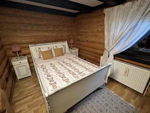 This location is really nice! It is secluded from the city and the crowded streets and it blends with the nature sorounding it. It has a very big yard that has ponds and benches looks like a peaceful park. There are a few buildings on the propriety like a conference room, a grill house another cabin where you can stay near the main one. The main facility has a restaurant at the ground floor and a pool and a sauna. Up on 2 levels there are the rooms.The rooms are not so big but clean and well funrnished. The restaurant is nice tables are big the staff is polite, the food is real tasty and views are great. Unfortunately for kids there isn t much to do except the pool. I am recomanding this location to come.with friends even kids. The best deal is the appartament and best chose it in the building that...