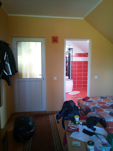 😊: Gazda foarte amabilă. De trei ori am fost serviți cu pălincă: 1) La sosire, 2) După drumeția pe munte 3) După o zi de excursie la Miercurea Ciuc. Ni s-a permis si ni s-a pus la dispoziție condiții să ne gătim singuri bucatele, atunci când am dorit. Locația este foarte bună. Într-o comună amplasată între munți cu peisaje splendide mioritice. La 1,5 km de pârtia de bob, la 5 minute de magazinul cu prețuri adecvate si la un minut de Gara de tren. O zi am lăsat masina în parcare si am mers cu familia cu trenul la Miercurea Ciuc. Copiilor le-a plăcut foarte mult experiența. Peisaje foarte frumoase le prinzi si din tren, si de pe sania de pe bob și de la pensiune, dar si de pe muntele de vis-a-vis, care l-am urcat cu familia. Splendid!. 😢: Dacă să enunț ce nu are pensiunea? Ar fi: nu are ciubăr și alte comodități pentru cei cu fițe. În rest, pentru o familie care caută câteva zile de odihnă și refugiu de civilizație, locația...