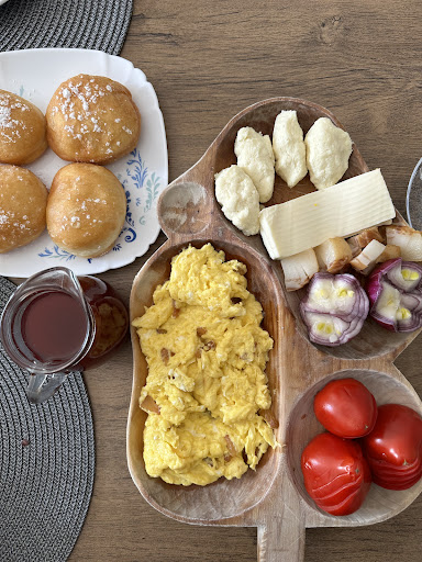 Read moreTutto....OTTIMO: accoglienza(placinte motesti, succhi di frutta fatti in casa), le camere con gli infissi nuovi e vetri termici, la biancheria piana di un'eccellente fattura, i letti comodissimi, i cuscini fantastici, la quiete, il paesaggio mozzafiato, la pulizia, lo spazio giochi per i bambini fuori e dentro pensato apposta per non disturbare gli altri, il pollice verde molto curato e gli alberi fruttiferi colmi alla disposizione dei clienti, il gazebo, l'altalena, le sdraia, la FANTASTICA cucina TRADIZIONALE(tutto al kilometro zero), la massima disponibilità ed il grande ❤️ della famiglia che gestisce la pensione!!!!! Ho molto apprezzato il living messo alla nostra disposizione a piano terra con tutto l'occorrente per servire |tranquillamente il tuo cibo. C'è un grande frigo, un bollitore per farti un caffè o un tè (offerti in abbondanza dalla casa), un tavolo, le poltrone e le sedie, un lavandino dotato di sapone per i piatti, i bicchieri, le tazze, lo scotex. Ho sbirciato e ho visto che al primo piano c'è addirittura un'elegante living room dotato da un forno a microonde, una macchinetta per caffè, un bellissimo divano e poltrone in similpelle, un tavolo, le sedie e anche una scrivania....Noi abbiamo optato per mezza pensione e ci siamo trovate BENISSIMO!!!! Vorrei poter dire di più ma...le parole non bastano così, come le foto non rendono giustizia! Il cibo poi... è da 110 e lode!!!! Chi vuole un'altra colazione o ha delle esigenze alimentari, basta dirlo perché la signora Maria è molto disponibile e fa di tutto per "accarezzare" i suoi ospiti(a sua detta). Io vivo in Italia e sono tornata per passare 2-3 giorni tranquilli insieme alla mia mamma, posso dire solo che è stato tutto PERFETTO!!!! È un'affare di famiglia, gestito veramente alla grande. Buono anche il rapporto qualità-prezzo. L'unica pecca: la mancanza di una balaustra anche al piano terra per quei tre scalini per agevolare la deambulazione |delle persone anziane (il caso della mia mamma) ma...sono sicura che ci provvederanno. Un'ultima cosa: un 🍞 così BUONO, mai mangiato in vita mia e poi...la ciorba è squisita!!!! Mi sono decisa a dare la fiducia ad un posto scoperto per caso sul internet ma...non mi sono pentita, anzi, siamo state fortunate! Provare per credere per cui, straconsiglio vivamente la pensione...