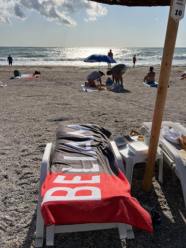 The renting of two sunbeds, a small table and umbrella is 12 euros. It can be paid at the reception or directly at the beach.